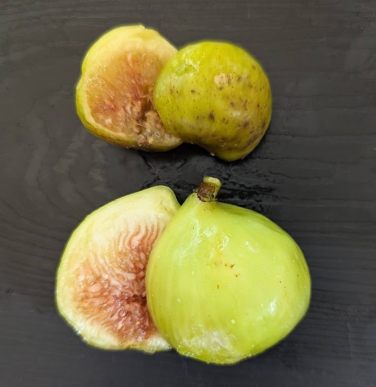 突然変異によって生み出された極上の味わいのイチジクで、果皮は、黄緑から黄褐色で、果肉は、琥珀色からピンク色で、熟すと小さな皮にひびが入り、薄い赤い縞模様がでます。